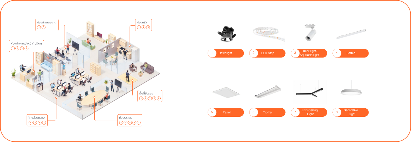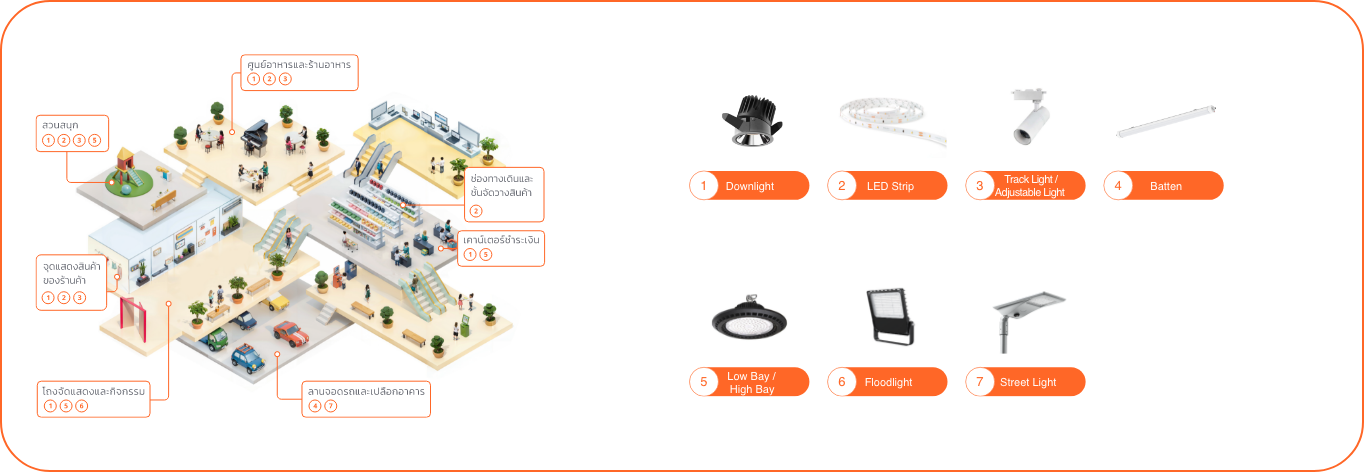 B.Grimm Technologies delivers cutting-edge lighting solutions that not only enhance aesthetics and functionality in commercial and industrial facilities, but also significantly promote energy efficiency and cost savings. As a leading specialist in comprehensive lighting solutions, we commission every project with all-in-one services from consultation, design, installation, maintenance, and after-sales support.