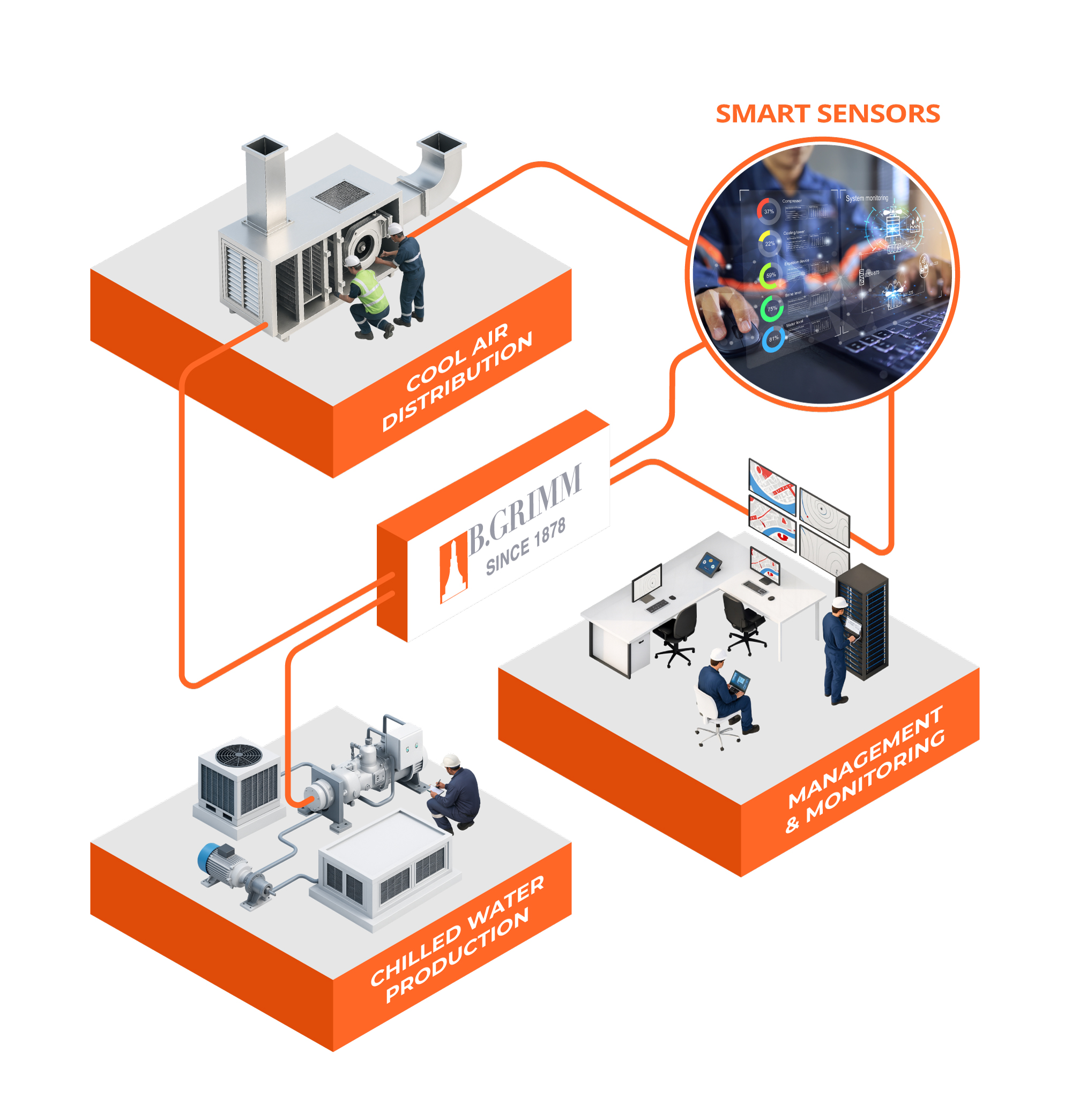 ด้วยความเชี่ยวชาญผ่านความร่วมมือกับ Carrier กว่า 60 ปี บี.กริม เทคโนโลยี ภูมิใจอย่างยิ่งที่จะส่งมอบโซลูชันระบบปรับอากาศ (HVAC) ที่ล้ำสมัย เพื่อให้ทุกธุรกิจมั่นใจได้ว่าอากาศในอาคารของคุณจะมีคุณภาพดีที่สุด เย็นสบาย รวมถึงระบบปรับอากาศสามารถใช้พลังงานได้อย่างมีประสิทธิภาพมากขึ้น โซลูชันของเราให้บริการอย่างครอบคลุมทุกขั้นตอน ตลอดอายุการใช้งาน โดยเราเริ่มตั้งแต่การสำรวจสถานที่จริงเพื่อทำการวิเคราะห์สถานที่อย่างละเอียด เพื่อเข้าสู่การออกแบบระบบและติดตั้งอย่างรอบคอบ ไปจนถึงการให้บริการหลังการขาย เราเข้าใจเป็นอย่างดีว่าอาคารหรือโรงงานอุตสาหกรรมแบบต่าง ๆ มีความต้องการเกี่ยวกับการปรับอากาศที่แตกต่างกัน เราจึงสร้างสรรค์ระบบ HVAC ที่สามารถปรับเปลี่ยนให้เหมาะสมกับความต้องการของแต่ละธุรกิจและการใช้งานได้ ซึ่งจะช่วยเพิ่มประสิทธิภาพและประหยัดค่าใช้จ่ายในระยะยาวให้กับลูกค้าของเรามากยิ่งขึ้น